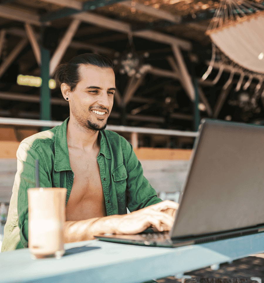 Mark works as a freelance software developer. It allows him to travel anywhere in the world… and he loves it!